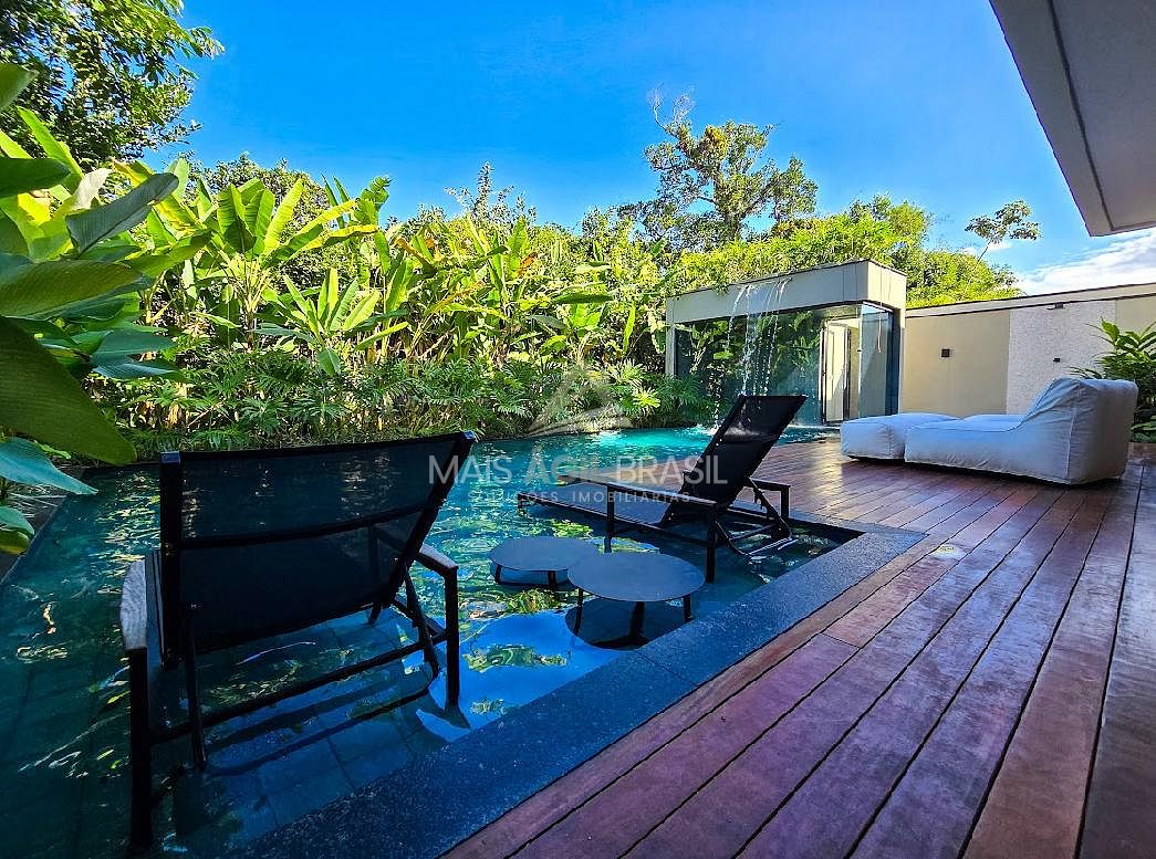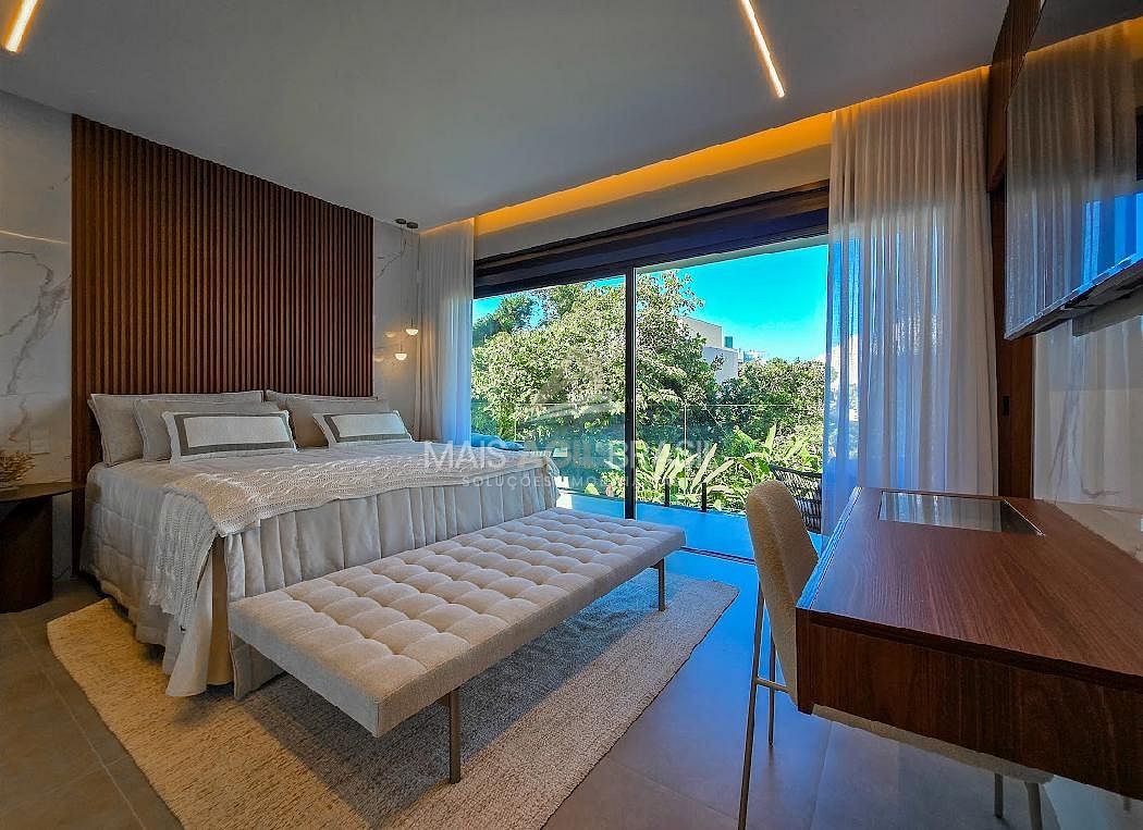 5 suítes decoradas, sendo 1 master com sala de banho, cuba dupla, ducha Sr./Sra., banheira de imersão, varanda e copa de apoio.