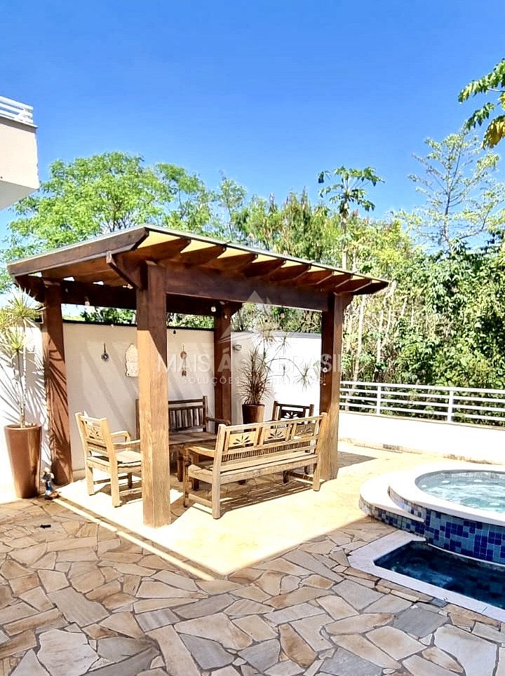 Descrição do Imovel: Sala 2 ambientes com pé direito elevado. - 01 Dormitório no térreo. - Banheiro social. - Cozinha. - Lavanderia. - Banheiro externo. - Depósito. - Area Gourmet. - Pergolado em madeira. - Piscina com vista. - 03 suítes. - Escritório no piso superior.