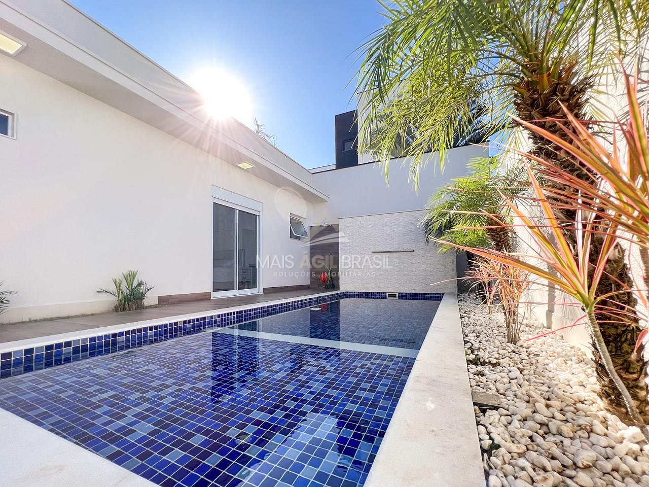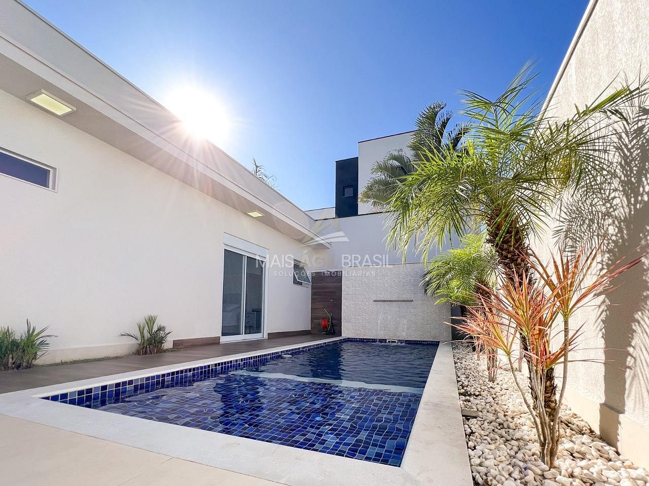 Possui quintal com paisagismo e piscina com cascata e iluminação em led. Na área gourmet há sistema de som Bluetooth. Entrada de serviço independente.