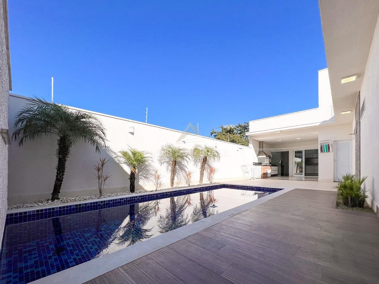 Ar condicionado em todos os ambientes. Área gourmet com churrasqueira, coifa em inox e grande pia, cook top e armários planejados.