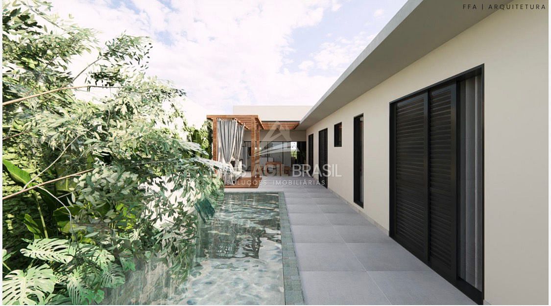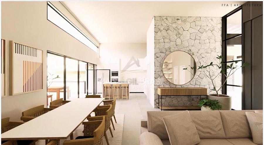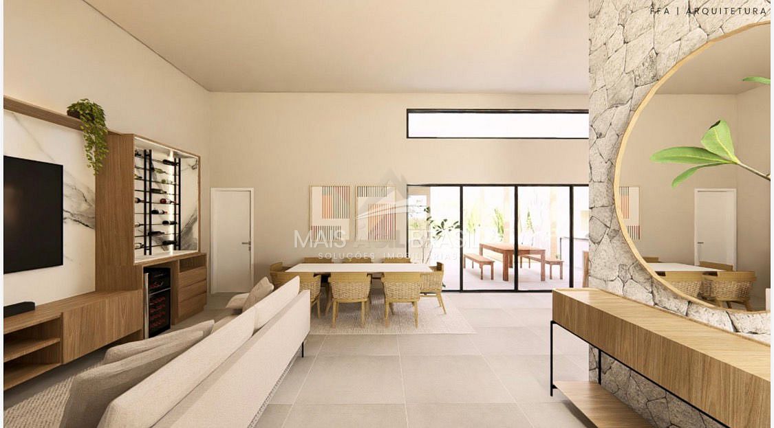 Distribuição dos Ambientes: 3 suítes + um dormitorio reversivel a home office, sendo suíte master com closet, Lavabo, Sala de estar e jantar integradas, Cozinha integrada à área gourmet, Lavanderia, Piscina com prainha, Ducha externa, ar condicionado em todos os amabientes.