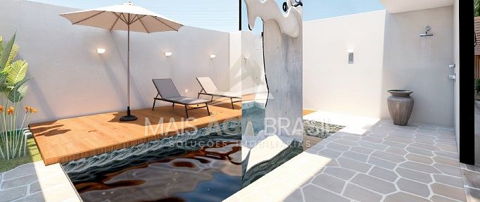 Piso inferior - abaixo do nível da rua: Área gourmet completa, Banheiro, Ampla área de serviço, Piscina de 15m², Quintal de 20m² todo revestido