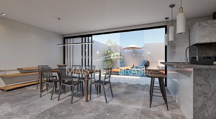 3 suítes, Sala de estar/ jantar com pé direito duplo, Cozinha, Lavabo, Jardim de inverno