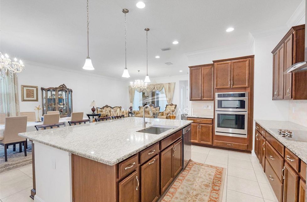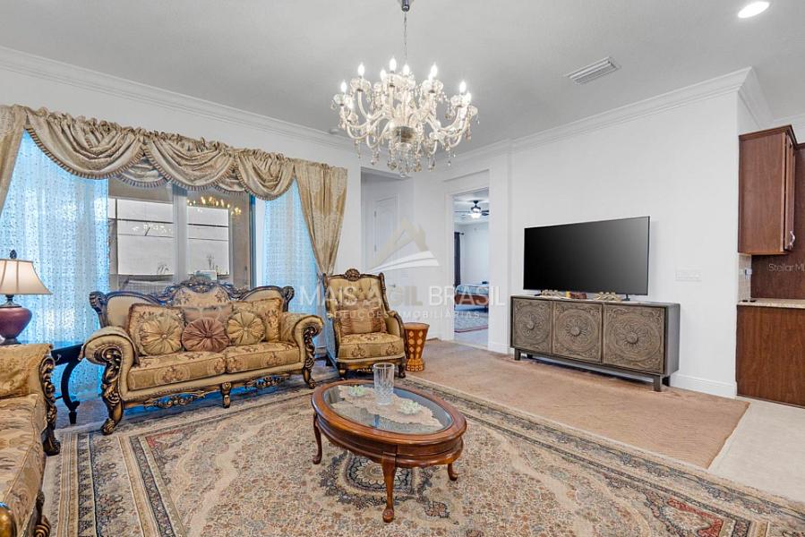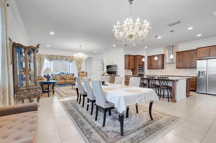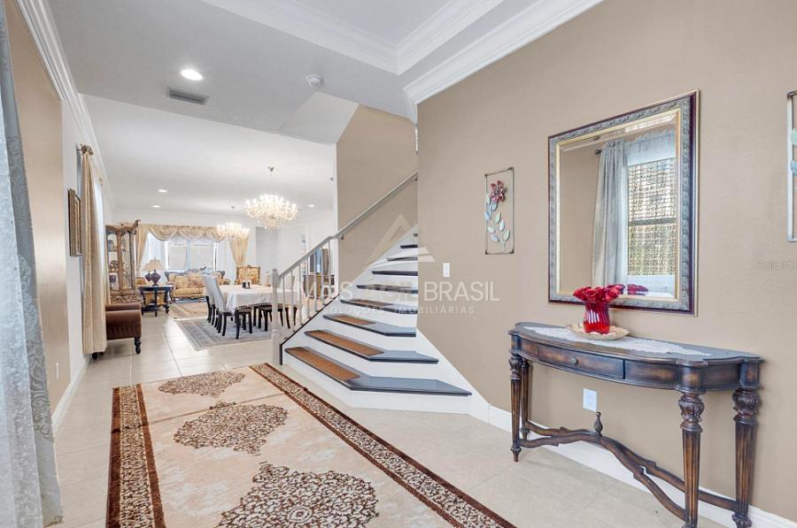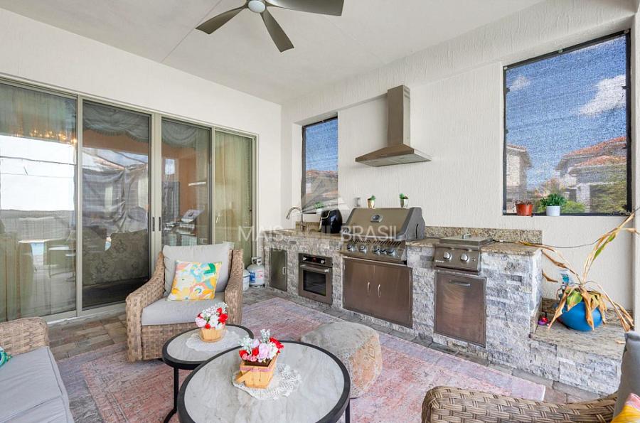 Experimente o luxo de viver em Eagle Creek, um dos condomínios fechados mais exclusivos com campo de golfe em Lake Nona. Construída em 2022, esta deslumbrante casa modelo Sandhill da Jones Homes está situada em um terreno de esquina privilegiado, em frente a um playground comunitário e com fácil acesso às caixas de correio do bairro. Esta espaçosa residência de 5 quartos e 5 banheiros foi cuidadosamente projetada com flexibilidade em mente, tornando-a ideal para famílias multigeneracionais. A casa possui suítes master no primeiro e segundo andares, além de duas lavanderias para maior comodidade. A planta aberta e iluminada é repleta de luz natural e apresenta tetos altos, acabamentos modernos e uma cozinha inspirada em chefs, com eletrodomésticos de aço inoxidável e uma grande ilha central com vista para as salas de estar e jantar — perfeita para receber convidados ou para o dia a dia. Saia para o seu refúgio privativo no quintal, com uma piscina cristalina, varanda coberta e cozinha externa, criando o espaço perfeito para relaxar e desfrutar da vida na Flórida durante todo o ano. Outros destaques incluem uma garagem para 3 carros e uma localização privilegiada de esquina dentro do condomínio. Os moradores de Eagle Creek desfrutam de comodidades dignas de resort, incluindo um campo de golfe de campeonato, diversas piscinas comunitárias, restaurante no clube, academia, quadras de tênis, playgrounds e segurança 24 horas com portaria. A Escola Primária Eagle Creek está convenientemente localizada dentro do condomínio, e você estará a poucos minutos do Lake Nona Medical City, do Lake Nona Town Center, do Boxi Park, do Campus Nacional da USTA, além de lojas, restaurantes e principais rodovias. Uma oportunidade rara de possuir uma casa de luxo que oferece espaço, flexibilidade e uma localização excepcional em Lake Nona.